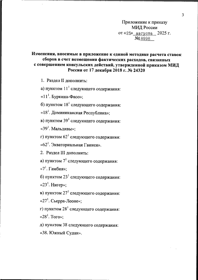 ПРИКАЗ МИД РФ от 25.08.2025 N 18998
