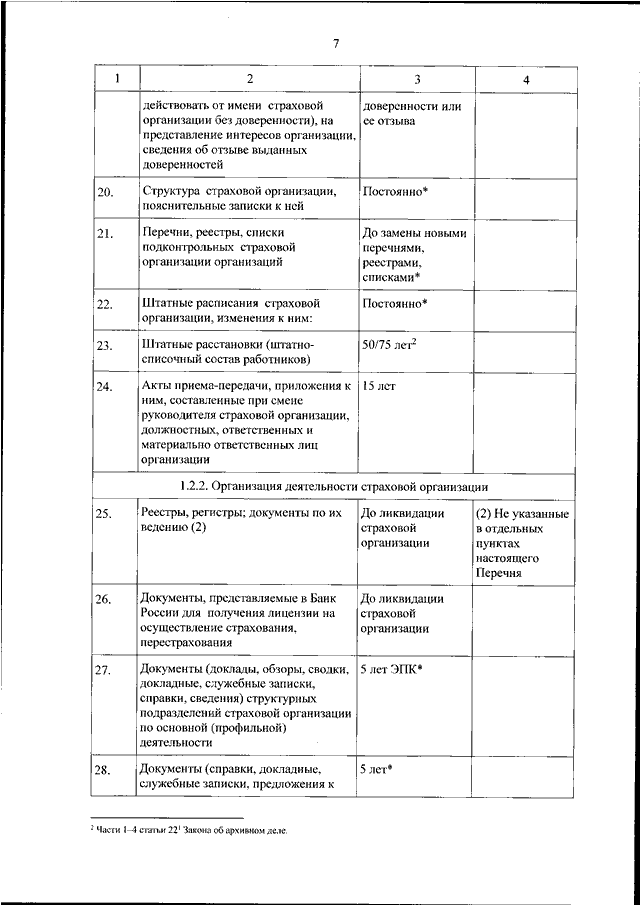 "ОБ УТВЕРЖДЕНИИ ПЕРЕЧНЯ ДОКУМЕНТОВ, ОБРАЗУЮЩИХСЯ В ПРОЦЕССЕ ДЕЯТЕЛЬНОСТИ СТРАХОВЫХ ОРГАНИЗАЦИЙ, С УКАЗАНИЕМ СРОКОВ ИХ ХРАНЕНИЯ"