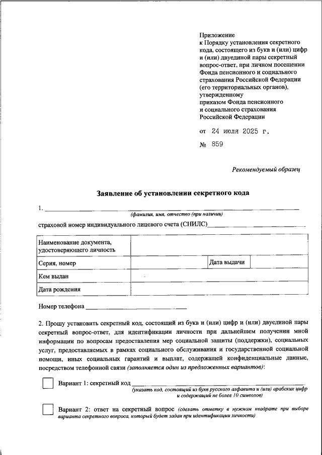 ПРИКАЗ СФР от 24.07.2025 N 859