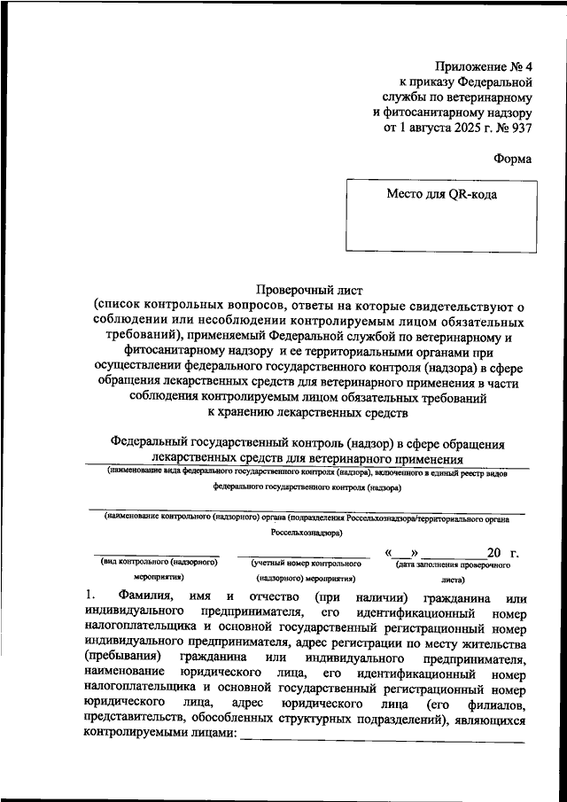 ПРИКАЗ Россельхознадзора от 01.08.2025 N 937
