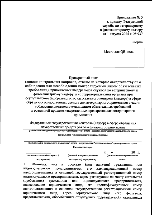 ПРИКАЗ Россельхознадзора от 01.08.2025 N 937