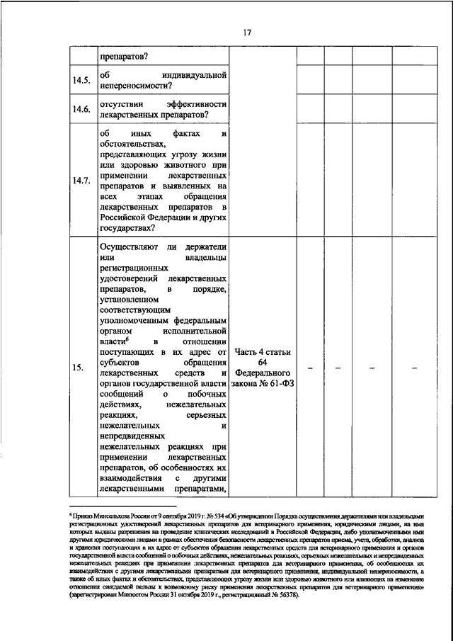 "ОБ УТВЕРЖДЕНИИ ФОРМ ПРОВЕРОЧНЫХ ЛИСТОВ (СПИСКОВ КОНТРОЛЬНЫХ ВОПРОСОВ, ОТВЕТЫ НА КОТОРЫЕ СВИДЕТЕЛЬСТВУЮТ О СОБЛЮДЕНИИ ИЛИ НЕСОБЛЮДЕНИИ КОНТРОЛИРУЕМЫМ ЛИЦОМ ОБЯЗАТЕЛЬНЫХ ТРЕБОВАНИЙ), ПРИМЕНЯЕМЫХ ФЕДЕРАЛЬНОЙ СЛУЖБОЙ ПО ВЕТЕРИНАРНОМУ И ФИТОСАНИТАРНОМУ НАДЗОРУ И ЕЕ ТЕРРИТОРИАЛЬНЫМИ ОРГАНАМИ ПРИ ОСУЩЕСТВЛЕНИИ ФЕДЕРАЛЬНОГО ГОСУДАРСТВЕННОГО КОНТРОЛЯ (НАДЗОРА) В СФЕРЕ ОБРАЩЕНИЯ ЛЕКАРСТВЕННЫХ СРЕДСТВ ДЛЯ ВЕТЕРИНАРНОГО ПРИМЕНЕНИЯ"