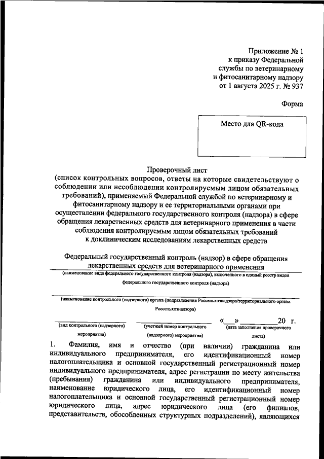 ПРИКАЗ Россельхознадзора от 01.08.2025 N 937