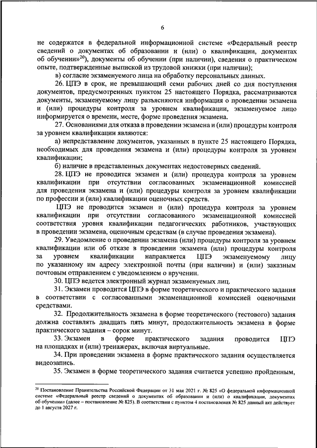 "ОБ УСТАНОВЛЕНИИ ПОРЯДКА ПРОВЕДЕНИЯ ЭКЗАМЕНА, АККРЕДИТАЦИИ ЦЕНТРОВ ПРОВЕДЕНИЯ ЭКЗАМЕНА, А ТАКЖЕ ОСУЩЕСТВЛЕНИЯ КОНТРОЛЯ ЗА УРОВНЕМ КВАЛИФИКАЦИИ СПЕЦИАЛИСТОВ В СФЕРЕ РАЗРАБОТКИ И ПРОИЗВОДСТВА БЕСПИЛОТНЫХ АВИАЦИОННЫХ СИСТЕМ И (ИЛИ) ИХ ЭЛЕМЕНТОВ, А ТАКЖЕ В СФЕРЕ ЭКСПЛУАТАЦИИ БЕСПИЛОТНЫХ ВОЗДУШНЫХ СУДОВ С МАКСИМАЛЬНОЙ ВЗЛЕТНОЙ МАССОЙ 30 КИЛОГРАММОВ И МЕНЕЕ, НЕ ВКЛЮЧЕННЫХ В ПЕРЕЧЕНЬ СПЕЦИАЛИСТОВ АВИАЦИОННОГО ПЕРСОНАЛА ГРАЖДАНСКОЙ АВИАЦИИ РОССИЙСКОЙ ФЕДЕРАЦИИ"