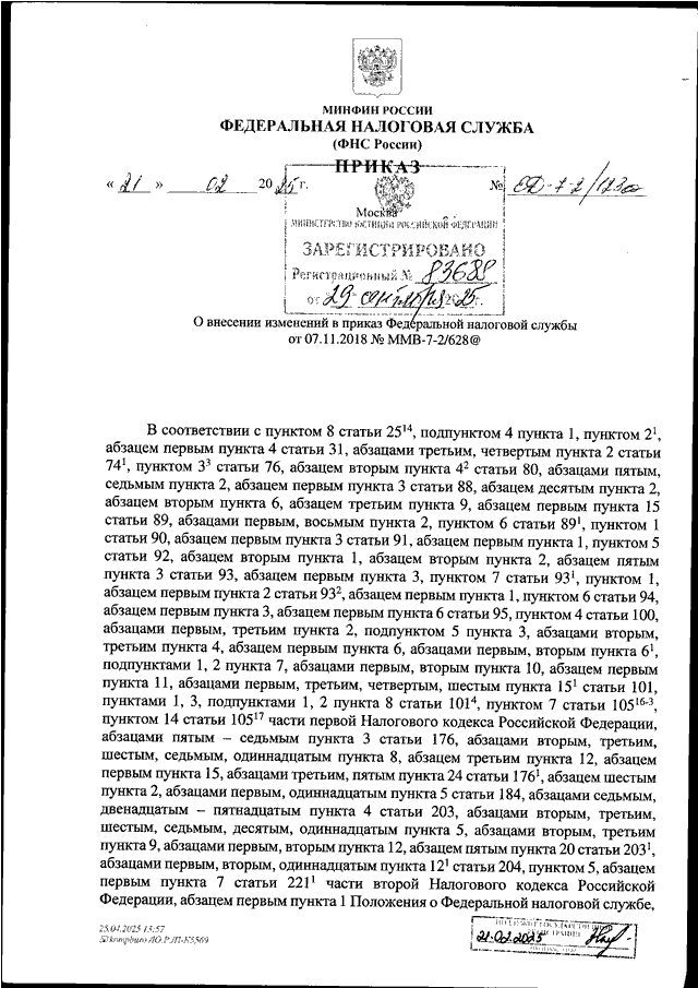 ПРИКАЗ ФНС РФ от 21.02.2025 N ЕД-7-2/123@