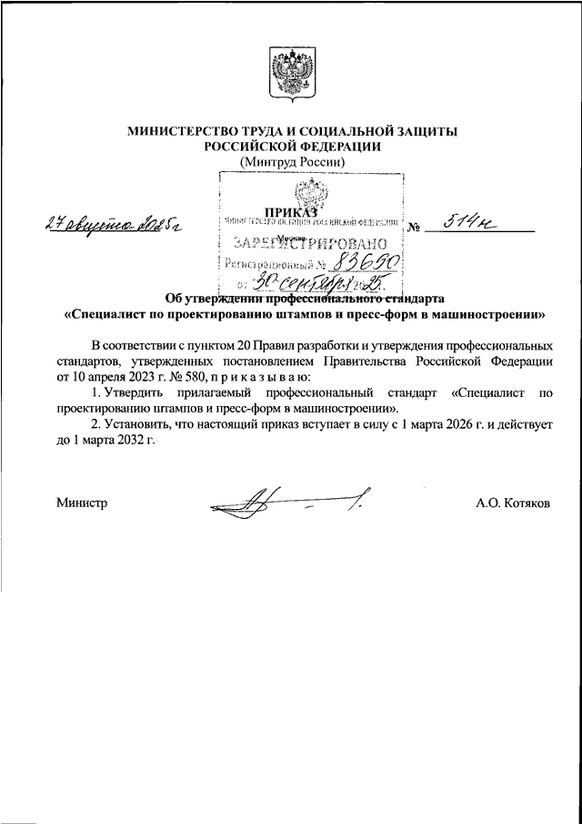 ПРИКАЗ Минтруда РФ от 27.08.2025 N 514н