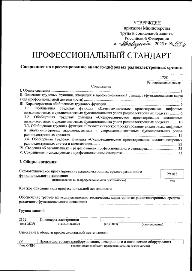 "ОБ УТВЕРЖДЕНИИ ПРОФЕССИОНАЛЬНОГО СТАНДАРТА "СПЕЦИАЛИСТ ПО ПРОЕКТИРОВАНИЮ АНАЛОГО-ЦИФРОВЫХ РАДИОЭЛЕКТРОННЫХ СРЕДСТВ"