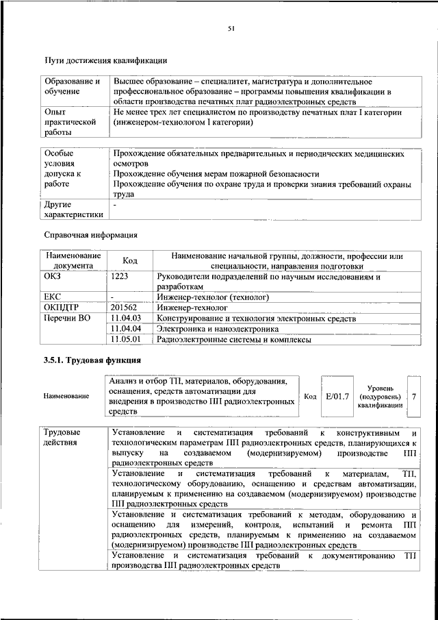 "ОБ УТВЕРЖДЕНИИ ПРОФЕССИОНАЛЬНОГО СТАНДАРТА "СПЕЦИАЛИСТ ПО ПРОИЗВОДСТВУ ПЕЧАТНЫХ ПЛАТ РАДИОЭЛЕКТРОННЫХ СРЕДСТВ"