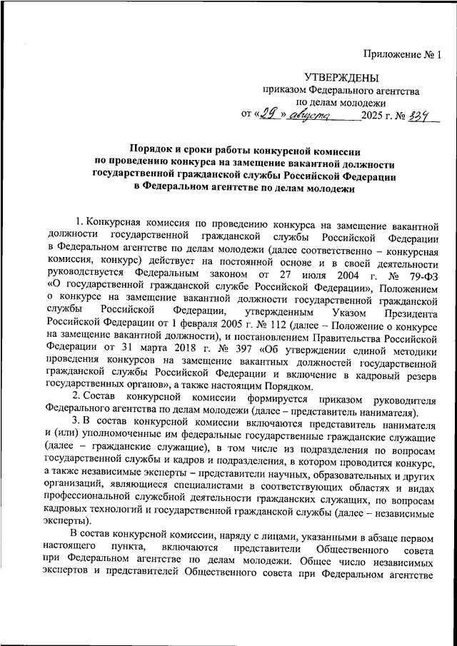 ПРИКАЗ Росмолодежи от 29.08.2025 N 334