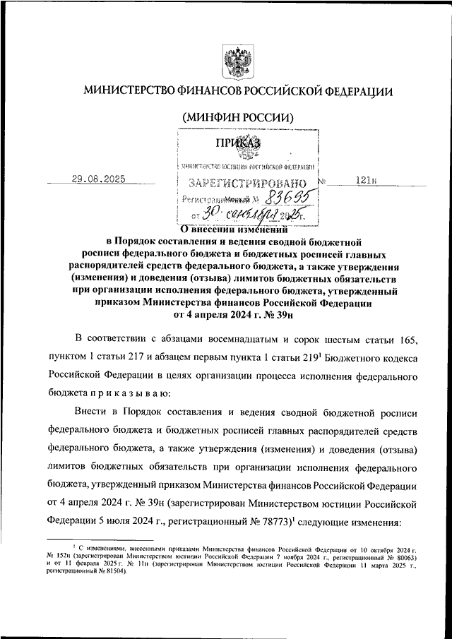 ПРИКАЗ Минфина РФ от 29.08.2025 N 121н