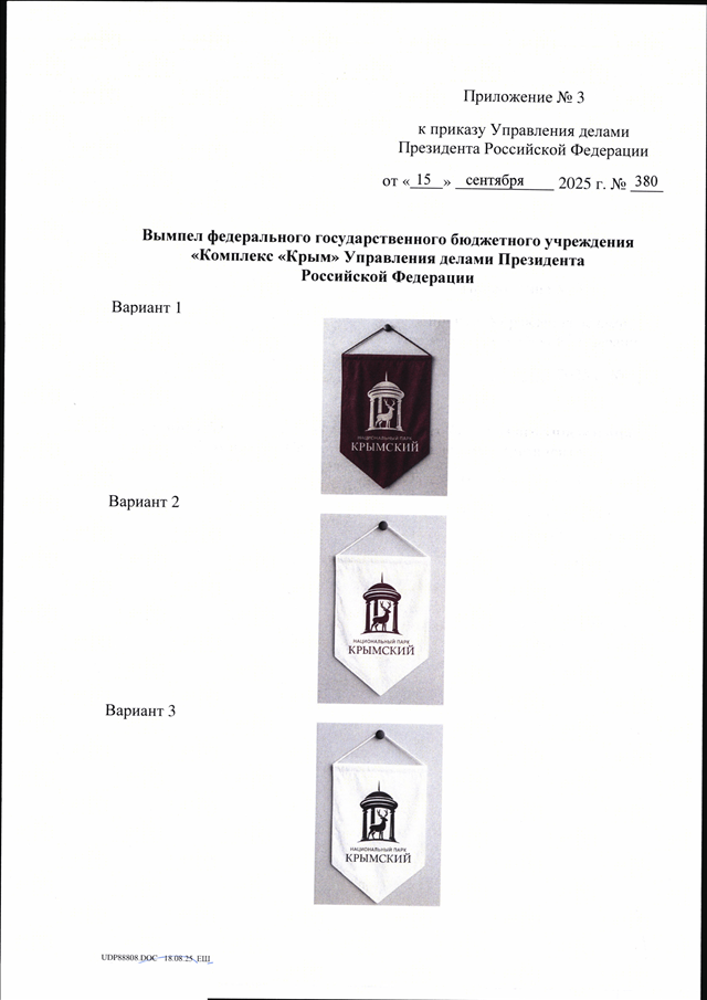 ПРИКАЗ Управления делами Президента РФ от 15.09.2025 N 380