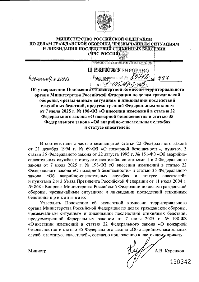 ПРИКАЗ МЧС РФ от 04.09.2025 N 777
