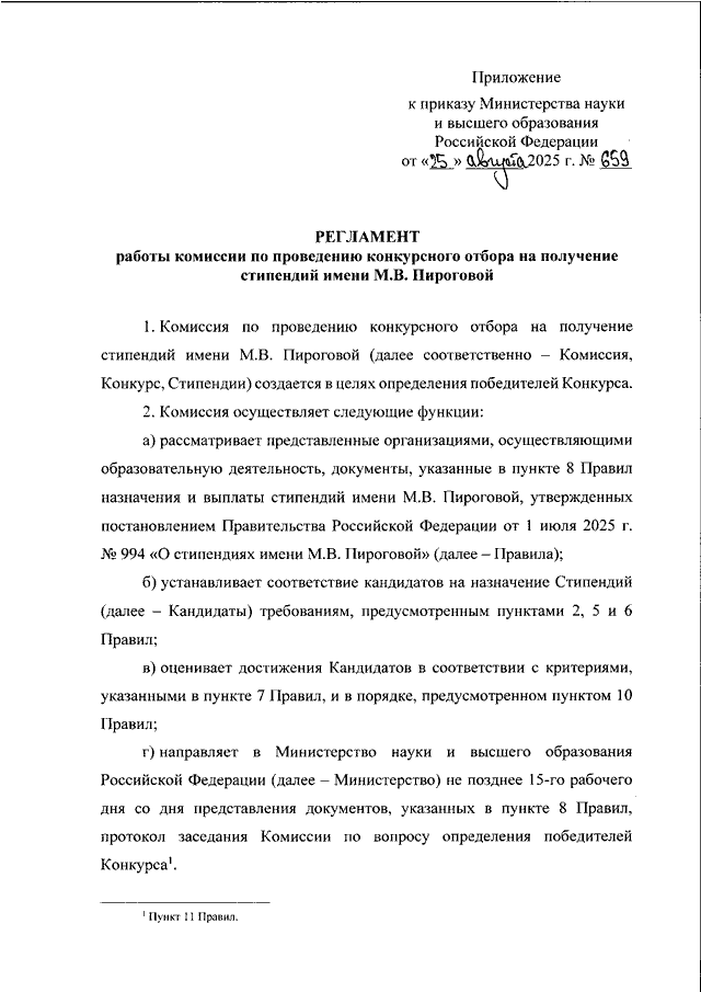 ПРИКАЗ Минобрнауки РФ от 25.08.2025 N 659