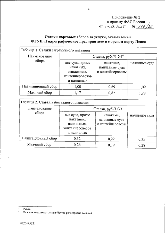 "ОБ УТВЕРЖДЕНИИ СТАВОК ПОРТОВЫХ СБОРОВ ЗА УСЛУГИ, ОКАЗЫВАЕМЫЕ ФГУП "ГИДРОГРАФИЧЕСКОЕ ПРЕДПРИЯТИЕ" В МОРСКИХ ПОРТАХ ДУДИНКА, ПЕВЕК, САБЕТТА"
