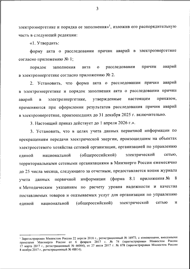 "ОБ УТВЕРЖДЕНИИ ПОРЯДКА ПЕРЕДАЧИ ОПЕРАТИВНОЙ ИНФОРМАЦИИ ОБ АВАРИЯХ В ЭЛЕКТРОЭНЕРГЕТИКЕ И ИНЦИДЕНТАХ В ЭЛЕКТРОЭНЕРГЕТИКЕ, ФОРМ АКТОВ ПО РЕЗУЛЬТАТАМ РАССЛЕДОВАНИЯ ПРИЧИН АВАРИЙ И ИНЦИДЕНТОВ В ЭЛЕКТРОЭНЕРГЕТИКЕ И ТРЕБОВАНИЙ К ИХ ЗАПОЛНЕНИЮ, ФОРМ ОТЧЕТОВ ОБ АВАРИЯХ И ИНЦИДЕНТАХ В ЭЛЕКТРОЭНЕРГЕТИКЕ И ТРЕБОВАНИЙ К ИХ ЗАПОЛНЕНИЮ И О ВНЕСЕНИИ ИЗМЕНЕНИЙ В ПРИКАЗ МИНЭНЕРГО РОССИИ ОТ 2 МАРТА 2010 Г. N 90"
