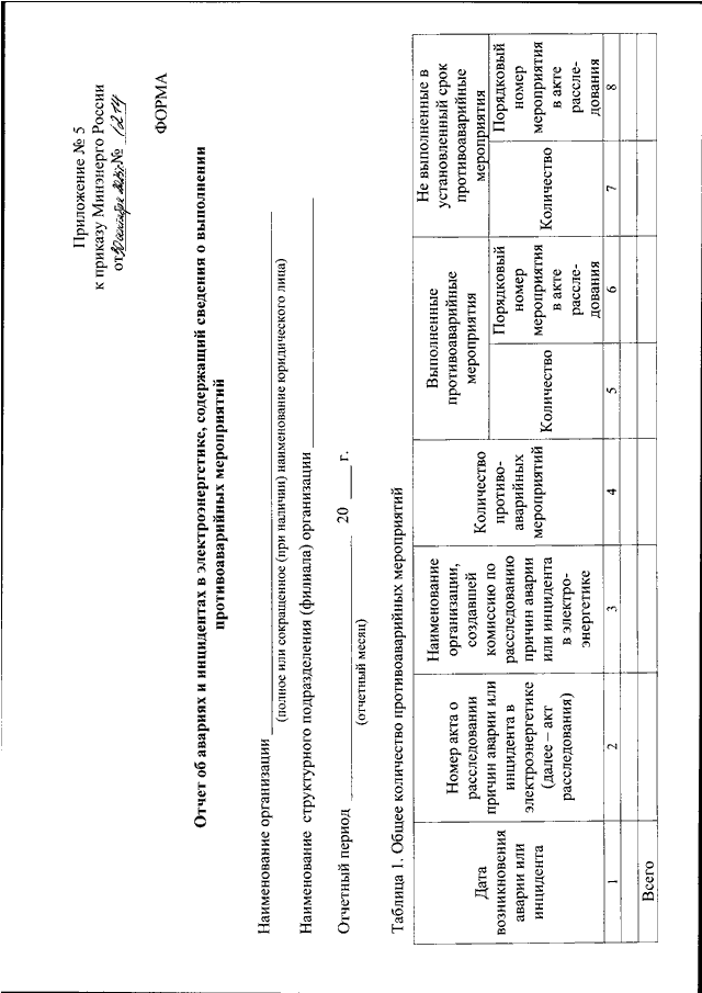 "ОБ УТВЕРЖДЕНИИ ПОРЯДКА ПЕРЕДАЧИ ОПЕРАТИВНОЙ ИНФОРМАЦИИ ОБ АВАРИЯХ В ЭЛЕКТРОЭНЕРГЕТИКЕ И ИНЦИДЕНТАХ В ЭЛЕКТРОЭНЕРГЕТИКЕ, ФОРМ АКТОВ ПО РЕЗУЛЬТАТАМ РАССЛЕДОВАНИЯ ПРИЧИН АВАРИЙ И ИНЦИДЕНТОВ В ЭЛЕКТРОЭНЕРГЕТИКЕ И ТРЕБОВАНИЙ К ИХ ЗАПОЛНЕНИЮ, ФОРМ ОТЧЕТОВ ОБ АВАРИЯХ И ИНЦИДЕНТАХ В ЭЛЕКТРОЭНЕРГЕТИКЕ И ТРЕБОВАНИЙ К ИХ ЗАПОЛНЕНИЮ И О ВНЕСЕНИИ ИЗМЕНЕНИЙ В ПРИКАЗ МИНЭНЕРГО РОССИИ ОТ 2 МАРТА 2010 Г. N 90"