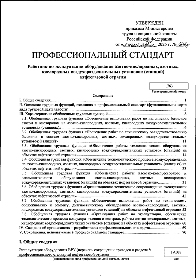"ОБ УТВЕРЖДЕНИИ ПРОФЕССИОНАЛЬНОГО СТАНДАРТА "РАБОТНИК ПО ЭКСПЛУАТАЦИИ ОБОРУДОВАНИЯ АЗОТНО - КИСЛОРОДНЫХ, АЗОТНЫХ, КИСЛОРОДНЫХ ВОЗДУХОРАЗДЕЛИТЕЛЬНЫХ УСТАНОВОК (СТАНЦИЙ) НЕФТЕГАЗОВОЙ ОТРАСЛИ"