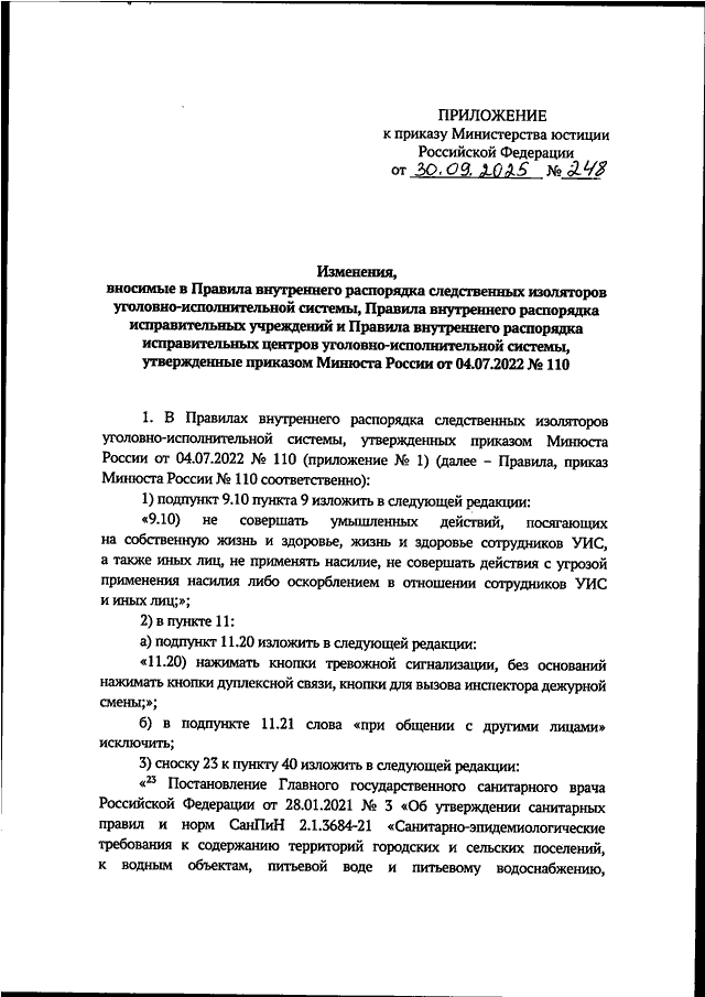 ПРИКАЗ Минюста РФ от 30.09.2025 N 248