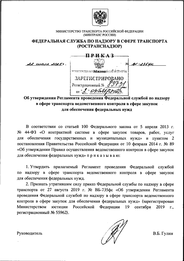 ПРИКАЗ Ространснадзора от 22.07.2025 N ВГ-236фс