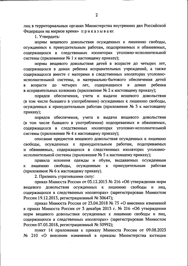 "ОБ ОБЕСПЕЧЕНИИ ВЕЩЕВЫМ ДОВОЛЬСТВИЕМ ОСУЖДЕННЫХ К ЛИШЕНИЮ СВОБОДЫ, ОСУЖДЕННЫХ К ПРИНУДИТЕЛЬНЫМ РАБОТАМ, ПОДОЗРЕВАЕМЫХ И ОБВИНЯЕМЫХ, СОДЕРЖАЩИХСЯ В СЛЕДСТВЕННЫХ ИЗОЛЯТОРАХ УГОЛОВНО - ИСПОЛНИТЕЛЬНОЙ СИСТЕМЫ, А ТАКЖЕ ДЕТЕЙ В ВОЗРАСТЕ ДО ЧЕТЫРЕХ ЛЕТ, СОДЕРЖАЩИХСЯ ВМЕСТЕ С МАТЕРЯМИ В СЛЕДСТВЕННЫХ ИЗОЛЯТОРАХ УГОЛОВНО - ИСПОЛНИТЕЛЬНОЙ СИСТЕМЫ, И ДЕТЕЙ, СОДЕРЖАЩИХСЯ В ДОМАХ РЕБЕНКА ИСПРАВИТЕЛЬНЫХ УЧРЕЖДЕНИЙ"
