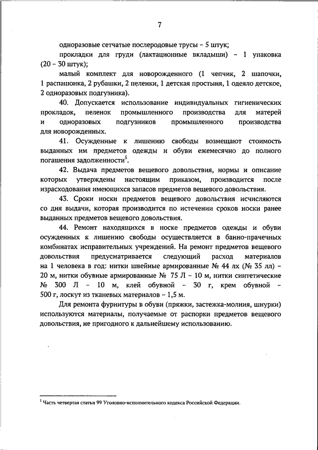 "ОБ ОБЕСПЕЧЕНИИ ВЕЩЕВЫМ ДОВОЛЬСТВИЕМ ОСУЖДЕННЫХ К ЛИШЕНИЮ СВОБОДЫ, ОСУЖДЕННЫХ К ПРИНУДИТЕЛЬНЫМ РАБОТАМ, ПОДОЗРЕВАЕМЫХ И ОБВИНЯЕМЫХ, СОДЕРЖАЩИХСЯ В СЛЕДСТВЕННЫХ ИЗОЛЯТОРАХ УГОЛОВНО - ИСПОЛНИТЕЛЬНОЙ СИСТЕМЫ, А ТАКЖЕ ДЕТЕЙ В ВОЗРАСТЕ ДО ЧЕТЫРЕХ ЛЕТ, СОДЕРЖАЩИХСЯ ВМЕСТЕ С МАТЕРЯМИ В СЛЕДСТВЕННЫХ ИЗОЛЯТОРАХ УГОЛОВНО - ИСПОЛНИТЕЛЬНОЙ СИСТЕМЫ, И ДЕТЕЙ, СОДЕРЖАЩИХСЯ В ДОМАХ РЕБЕНКА ИСПРАВИТЕЛЬНЫХ УЧРЕЖДЕНИЙ"
