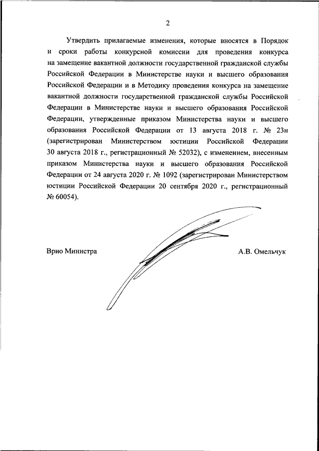 "О ВНЕСЕНИИ ИЗМЕНЕНИЙ В ПОРЯДОК И СРОКИ РАБОТЫ КОНКУРСНОЙ КОМИССИИ ДЛЯ ПРОВЕДЕНИЯ КОНКУРСА НА ЗАМЕЩЕНИЕ ВАКАНТНОЙ ДОЛЖНОСТИ ГОСУДАРСТВЕННОЙ ГРАЖДАНСКОЙ СЛУЖБЫ РОССИЙСКОЙ ФЕДЕРАЦИИ В МИНИСТЕРСТВЕ НАУКИ И ВЫСШЕГО ОБРАЗОВАНИЯ РОССИЙСКОЙ ФЕДЕРАЦИИ И В МЕТОДИКУ ПРОВЕДЕНИЯ КОНКУРСА НА ЗАМЕЩЕНИЕ ВАКАНТНОЙ ДОЛЖНОСТИ ГОСУДАРСТВЕННОЙ ГРАЖДАНСКОЙ СЛУЖБЫ РОССИЙСКОЙ ФЕДЕРАЦИИ В МИНИСТЕРСТВЕ НАУКИ И ВЫСШЕГО ОБРАЗОВАНИЯ РОССИЙСКОЙ ФЕДЕРАЦИИ, УТВЕРЖДЕННЫЕ ПРИКАЗОМ МИНИСТЕРСТВА НАУКИ И ВЫСШЕГО ОБРАЗОВАНИЯ РОССИЙСКОЙ ФЕДЕРАЦИИ ОТ 13 АВГУСТА 2018 Г. N 23Н"
