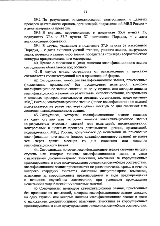 "ОБ УТВЕРЖДЕНИИ ПОРЯДКА ПРИСВОЕНИЯ, ПОДТВЕРЖДЕНИЯ КВАЛИФИКАЦИОННОГО ЗВАНИЯ, СНИЖЕНИЯ В КВАЛИФИКАЦИОННОМ ЗВАНИИ, ЛИШЕНИЯ КВАЛИФИКАЦИОННОГО ЗВАНИЯ И ВЕДЕНИЯ УЧЕТА СОТРУДНИКОВ ОРГАНОВ ВНУТРЕННИХ ДЕЛ РОССИЙСКОЙ ФЕДЕРАЦИИ, ИМЕЮЩИХ КВАЛИФИКАЦИОННЫЕ ЗВАНИЯ"