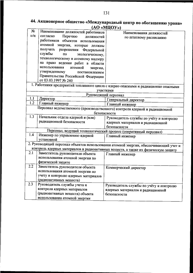"Росатом" от 08.09.2025 N 1/20-НПА "ОБ УТВЕРЖДЕНИИ ПЕРЕЧНЯ ДОЛЖНОСТЕЙ РАБОТНИКОВ ОБЪЕКТОВ ИСПОЛЬЗОВАНИЯ АТОМНОЙ ЭНЕРГИИ, НАХОДЯЩИХСЯ В ВЕДЕНИИ ГОСУДАРСТВЕННОЙ КОРПОРАЦИИ ПО АТОМНОЙ ЭНЕРГИИ "РОСАТОМ", КОТОРЫЕ ДОЛЖНЫ ПОЛУЧАТЬ РАЗРЕШЕНИЯ ФЕДЕРАЛЬНОЙ СЛУЖБЫ ПО ЭКОЛОГИЧЕСКОМУ, ТЕХНОЛОГИЧЕСКОМУ И АТОМНОМУ НАДЗОРУ НА ПРАВО ВЕДЕНИЯ РАБОТ В ОБЛАСТИ ИСПОЛЬЗОВАНИЯ АТОМНОЙ ЭНЕРГИИ"
