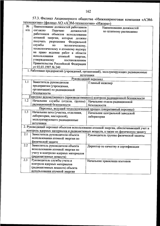 "Росатом" от 08.09.2025 N 1/20-НПА "ОБ УТВЕРЖДЕНИИ ПЕРЕЧНЯ ДОЛЖНОСТЕЙ РАБОТНИКОВ ОБЪЕКТОВ ИСПОЛЬЗОВАНИЯ АТОМНОЙ ЭНЕРГИИ, НАХОДЯЩИХСЯ В ВЕДЕНИИ ГОСУДАРСТВЕННОЙ КОРПОРАЦИИ ПО АТОМНОЙ ЭНЕРГИИ "РОСАТОМ", КОТОРЫЕ ДОЛЖНЫ ПОЛУЧАТЬ РАЗРЕШЕНИЯ ФЕДЕРАЛЬНОЙ СЛУЖБЫ ПО ЭКОЛОГИЧЕСКОМУ, ТЕХНОЛОГИЧЕСКОМУ И АТОМНОМУ НАДЗОРУ НА ПРАВО ВЕДЕНИЯ РАБОТ В ОБЛАСТИ ИСПОЛЬЗОВАНИЯ АТОМНОЙ ЭНЕРГИИ"