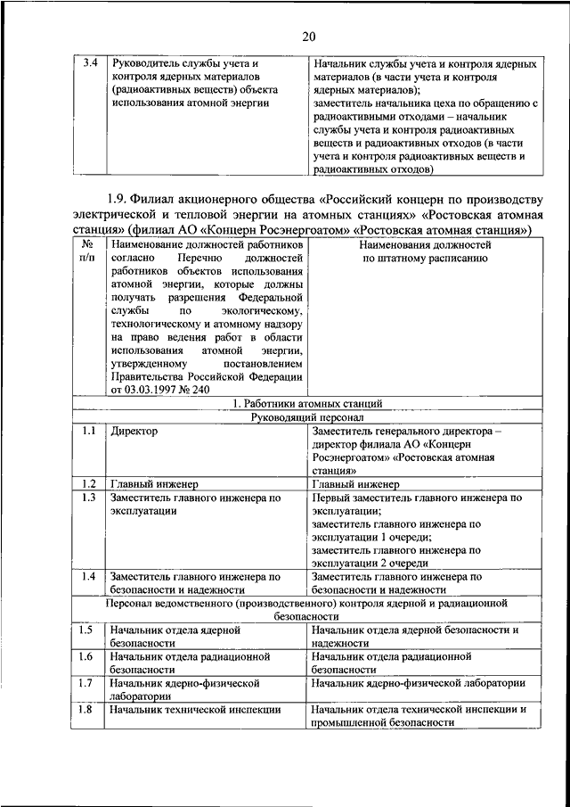 "Росатом" от 08.09.2025 N 1/20-НПА "ОБ УТВЕРЖДЕНИИ ПЕРЕЧНЯ ДОЛЖНОСТЕЙ РАБОТНИКОВ ОБЪЕКТОВ ИСПОЛЬЗОВАНИЯ АТОМНОЙ ЭНЕРГИИ, НАХОДЯЩИХСЯ В ВЕДЕНИИ ГОСУДАРСТВЕННОЙ КОРПОРАЦИИ ПО АТОМНОЙ ЭНЕРГИИ "РОСАТОМ", КОТОРЫЕ ДОЛЖНЫ ПОЛУЧАТЬ РАЗРЕШЕНИЯ ФЕДЕРАЛЬНОЙ СЛУЖБЫ ПО ЭКОЛОГИЧЕСКОМУ, ТЕХНОЛОГИЧЕСКОМУ И АТОМНОМУ НАДЗОРУ НА ПРАВО ВЕДЕНИЯ РАБОТ В ОБЛАСТИ ИСПОЛЬЗОВАНИЯ АТОМНОЙ ЭНЕРГИИ"
