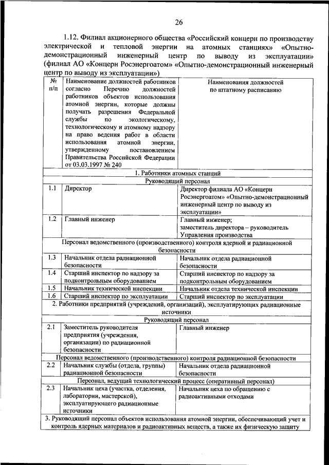 "Росатом" от 08.09.2025 N 1/20-НПА "ОБ УТВЕРЖДЕНИИ ПЕРЕЧНЯ ДОЛЖНОСТЕЙ РАБОТНИКОВ ОБЪЕКТОВ ИСПОЛЬЗОВАНИЯ АТОМНОЙ ЭНЕРГИИ, НАХОДЯЩИХСЯ В ВЕДЕНИИ ГОСУДАРСТВЕННОЙ КОРПОРАЦИИ ПО АТОМНОЙ ЭНЕРГИИ "РОСАТОМ", КОТОРЫЕ ДОЛЖНЫ ПОЛУЧАТЬ РАЗРЕШЕНИЯ ФЕДЕРАЛЬНОЙ СЛУЖБЫ ПО ЭКОЛОГИЧЕСКОМУ, ТЕХНОЛОГИЧЕСКОМУ И АТОМНОМУ НАДЗОРУ НА ПРАВО ВЕДЕНИЯ РАБОТ В ОБЛАСТИ ИСПОЛЬЗОВАНИЯ АТОМНОЙ ЭНЕРГИИ"