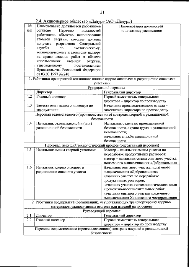 "Росатом" от 08.09.2025 N 1/20-НПА "ОБ УТВЕРЖДЕНИИ ПЕРЕЧНЯ ДОЛЖНОСТЕЙ РАБОТНИКОВ ОБЪЕКТОВ ИСПОЛЬЗОВАНИЯ АТОМНОЙ ЭНЕРГИИ, НАХОДЯЩИХСЯ В ВЕДЕНИИ ГОСУДАРСТВЕННОЙ КОРПОРАЦИИ ПО АТОМНОЙ ЭНЕРГИИ "РОСАТОМ", КОТОРЫЕ ДОЛЖНЫ ПОЛУЧАТЬ РАЗРЕШЕНИЯ ФЕДЕРАЛЬНОЙ СЛУЖБЫ ПО ЭКОЛОГИЧЕСКОМУ, ТЕХНОЛОГИЧЕСКОМУ И АТОМНОМУ НАДЗОРУ НА ПРАВО ВЕДЕНИЯ РАБОТ В ОБЛАСТИ ИСПОЛЬЗОВАНИЯ АТОМНОЙ ЭНЕРГИИ"