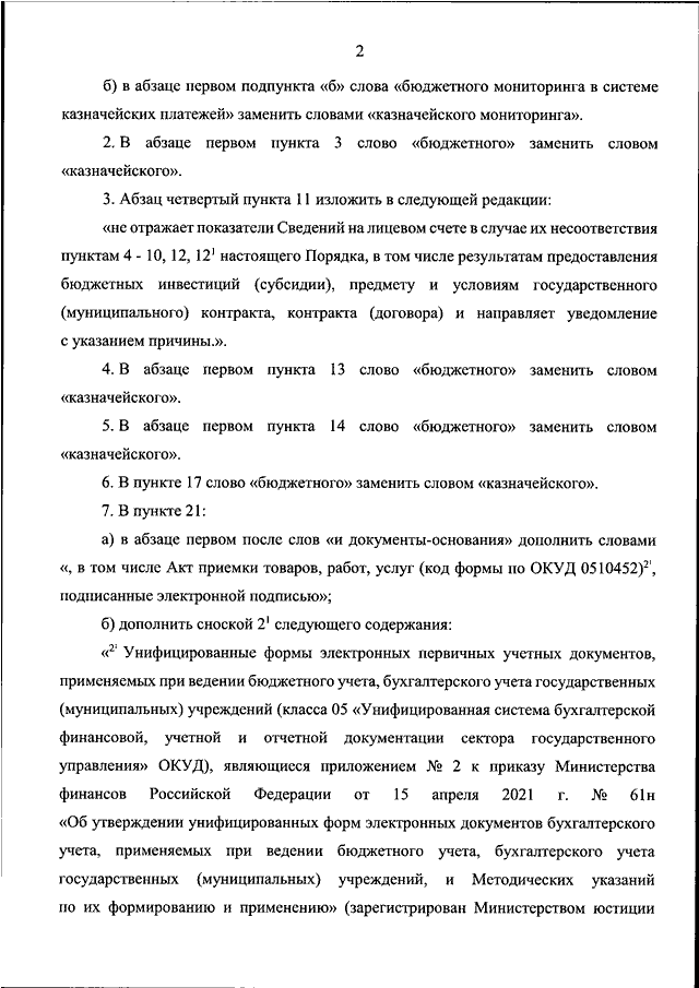 "О ВНЕСЕНИИ ИЗМЕНЕНИЙ В ПОРЯДОК ОСУЩЕСТВЛЕНИЯ ТЕРРИТОРИАЛЬНЫМИ ОРГАНАМИ ФЕДЕРАЛЬНОГО КАЗНАЧЕЙСТВА САНКЦИОНИРОВАНИЯ ОПЕРАЦИЙ СО СРЕДСТВАМИ УЧАСТНИКОВ КАЗНАЧЕЙСКОГО СОПРОВОЖДЕНИЯ, УТВЕРЖДЕННЫЙ ПРИКАЗОМ МИНИСТЕРСТВА ФИНАНСОВ РОССИЙСКОЙ ФЕДЕРАЦИИ ОТ 17 ДЕКАБРЯ 2021 Г. N 214Н"