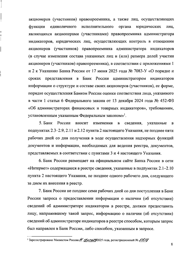 "О ВЕДЕНИИ БАНКОМ РОССИИ РЕЕСТРА АДМИНИСТРАТОРОВ ИНДИКАТОРОВ"