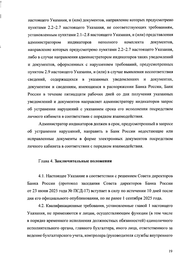 "О КВАЛИФИКАЦИОННЫХ ТРЕБОВАНИЯХ, КОТОРЫМ ДОЛЖНЫ СООТВЕТСТВОВАТЬ ЛИЦА, УКАЗАННЫЕ В АБЗАЦЕ ПЕРВОМ ЧАСТИ 1 СТАТЬИ 7 ФЕДЕРАЛЬНОГО ЗАКОНА ОТ 13 ДЕКАБРЯ 2024 Г. N 452-ФЗ "ОБ АДМИНИСТРАТОРАХ ФИНАНСОВЫХ И ТОВАРНЫХ ИНДИКАТОРОВ", ПОРЯДКЕ И СРОКАХ УВЕДОМЛЕНИЯ БАНКА РОССИИ АДМИНИСТРАТОРОМ ИНДИКАТОРОВ О НАЗНАЧЕНИИ (ОБ ИЗБРАНИИ) НА ДОЛЖНОСТЬ (ОБ ОСВОБОЖДЕНИИ ОТ ДОЛЖНОСТИ) УКАЗАННЫХ ЛИЦ, О ВРЕМЕННОМ ИСПОЛНЕНИИ ОБЯЗАННОСТЕЙ (ПРЕКРАЩЕНИИ ВРЕМЕННОГО ИСПОЛНЕНИЯ ОБЯЗАННОСТЕЙ) ПО ДОЛЖНОСТЯМ, УКАЗАННЫМ В АБЗАЦЕ ПЕРВОМ ЧАСТИ 1 СТАТЬИ 7 ФЕДЕРАЛЬНОГО ЗАКОНА ОТ 13 ДЕКАБРЯ 2024 Г. N 452-ФЗ "ОБ АДМИНИСТРАТОРАХ ФИНАНСОВЫХ И ТОВАРНЫХ ИНДИКАТОРОВ", ОБ ИЗМЕНЕНИИ СВЕДЕНИЙ О ТАКИХ ЛИЦАХ, О ФОРМЕ УВЕДОМЛЕНИЯ И ПЕРЕЧНЕ ПРИЛАГАЕМЫХ К УВЕДОМЛЕНИЮ ДОКУМЕНТОВ, ФОРМЕ И (ИЛИ) ТРЕБОВАНИЯХ, КОТОРЫМ ОНИ ДОЛЖНЫ СООТВЕТСТВОВАТЬ, А ТАКЖЕ О ПОРЯДКЕ ОСУЩЕСТВЛЕНИЯ БАНКОМ РОССИИ ОЦЕНКИ СООТВЕТСТВИЯ ЛИЦ, УКАЗАННЫХ В АБЗАЦЕ ПЕРВОМ ЧАСТИ 1 СТАТЬИ 7 ФЕДЕРАЛЬНОГО ЗАКОНА ОТ 13 ДЕКАБРЯ 2024 Г. N 452-ФЗ "ОБ АДМИНИСТРАТОРАХ ФИНАНСОВЫХ И ТОВАРНЫХ ИНДИКАТОРОВ", КВАЛИФИКАЦИОННЫМ ТРЕБОВАНИЯМ И (ИЛИ) ТРЕБОВАНИЯМ К ДЕЛОВОЙ РЕПУТАЦИИ, УСТАНОВЛЕННЫМ В СООТВЕТСТВИИ С УКАЗАННЫМ ФЕДЕРАЛЬНЫМ ЗАКОНОМ"