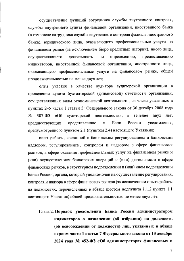 "О КВАЛИФИКАЦИОННЫХ ТРЕБОВАНИЯХ, КОТОРЫМ ДОЛЖНЫ СООТВЕТСТВОВАТЬ ЛИЦА, УКАЗАННЫЕ В АБЗАЦЕ ПЕРВОМ ЧАСТИ 1 СТАТЬИ 7 ФЕДЕРАЛЬНОГО ЗАКОНА ОТ 13 ДЕКАБРЯ 2024 Г. N 452-ФЗ "ОБ АДМИНИСТРАТОРАХ ФИНАНСОВЫХ И ТОВАРНЫХ ИНДИКАТОРОВ", ПОРЯДКЕ И СРОКАХ УВЕДОМЛЕНИЯ БАНКА РОССИИ АДМИНИСТРАТОРОМ ИНДИКАТОРОВ О НАЗНАЧЕНИИ (ОБ ИЗБРАНИИ) НА ДОЛЖНОСТЬ (ОБ ОСВОБОЖДЕНИИ ОТ ДОЛЖНОСТИ) УКАЗАННЫХ ЛИЦ, О ВРЕМЕННОМ ИСПОЛНЕНИИ ОБЯЗАННОСТЕЙ (ПРЕКРАЩЕНИИ ВРЕМЕННОГО ИСПОЛНЕНИЯ ОБЯЗАННОСТЕЙ) ПО ДОЛЖНОСТЯМ, УКАЗАННЫМ В АБЗАЦЕ ПЕРВОМ ЧАСТИ 1 СТАТЬИ 7 ФЕДЕРАЛЬНОГО ЗАКОНА ОТ 13 ДЕКАБРЯ 2024 Г. N 452-ФЗ "ОБ АДМИНИСТРАТОРАХ ФИНАНСОВЫХ И ТОВАРНЫХ ИНДИКАТОРОВ", ОБ ИЗМЕНЕНИИ СВЕДЕНИЙ О ТАКИХ ЛИЦАХ, О ФОРМЕ УВЕДОМЛЕНИЯ И ПЕРЕЧНЕ ПРИЛАГАЕМЫХ К УВЕДОМЛЕНИЮ ДОКУМЕНТОВ, ФОРМЕ И (ИЛИ) ТРЕБОВАНИЯХ, КОТОРЫМ ОНИ ДОЛЖНЫ СООТВЕТСТВОВАТЬ, А ТАКЖЕ О ПОРЯДКЕ ОСУЩЕСТВЛЕНИЯ БАНКОМ РОССИИ ОЦЕНКИ СООТВЕТСТВИЯ ЛИЦ, УКАЗАННЫХ В АБЗАЦЕ ПЕРВОМ ЧАСТИ 1 СТАТЬИ 7 ФЕДЕРАЛЬНОГО ЗАКОНА ОТ 13 ДЕКАБРЯ 2024 Г. N 452-ФЗ "ОБ АДМИНИСТРАТОРАХ ФИНАНСОВЫХ И ТОВАРНЫХ ИНДИКАТОРОВ", КВАЛИФИКАЦИОННЫМ ТРЕБОВАНИЯМ И (ИЛИ) ТРЕБОВАНИЯМ К ДЕЛОВОЙ РЕПУТАЦИИ, УСТАНОВЛЕННЫМ В СООТВЕТСТВИИ С УКАЗАННЫМ ФЕДЕРАЛЬНЫМ ЗАКОНОМ"
