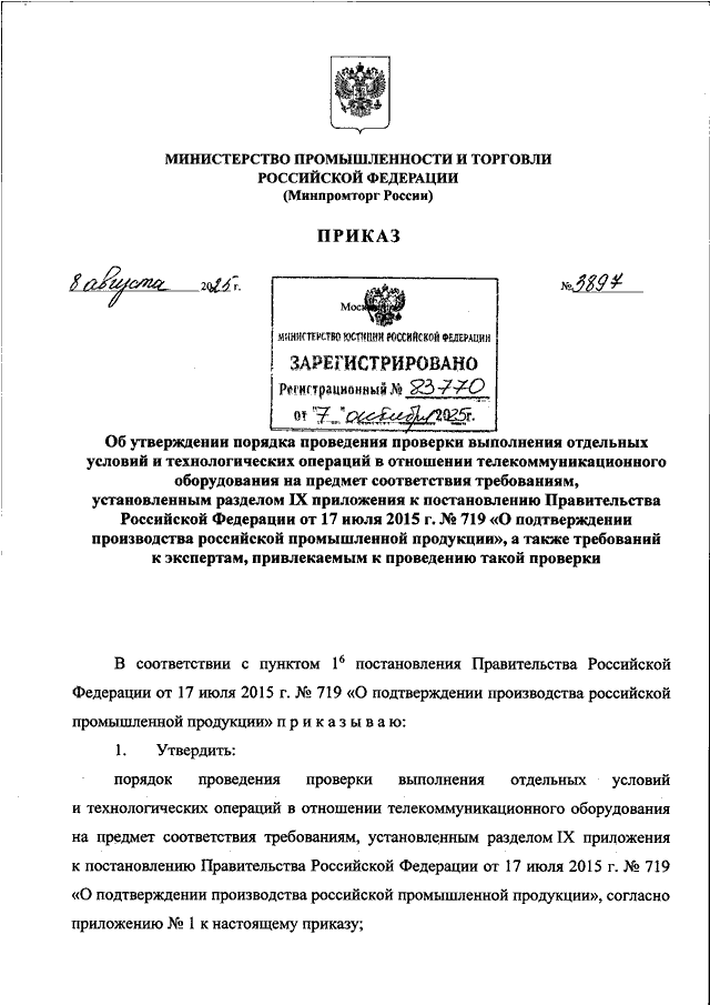 ПРИКАЗ Минпромторга РФ от 08.08.2025 N 3897