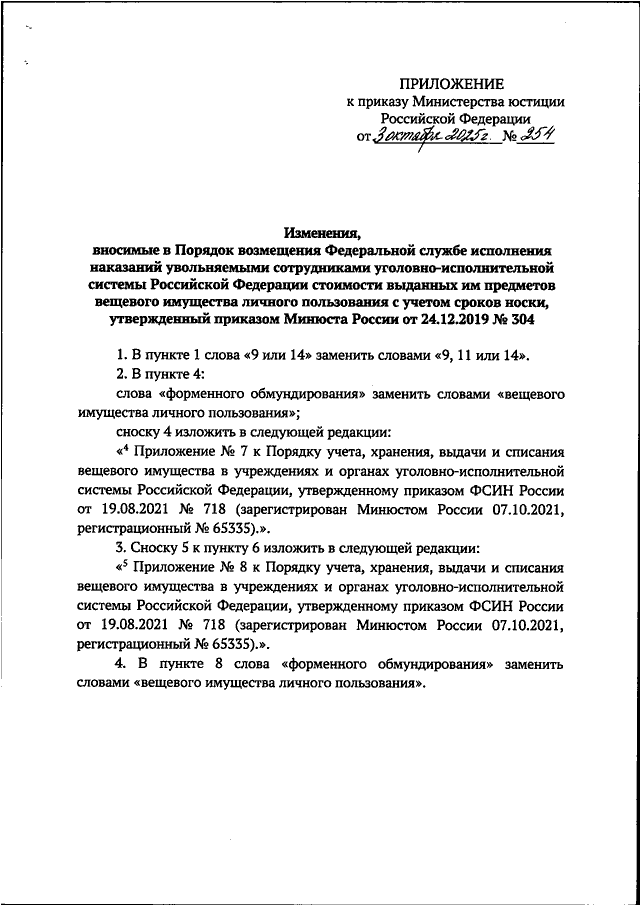 ПРИКАЗ Минюста РФ от 03.10.2025 N 254