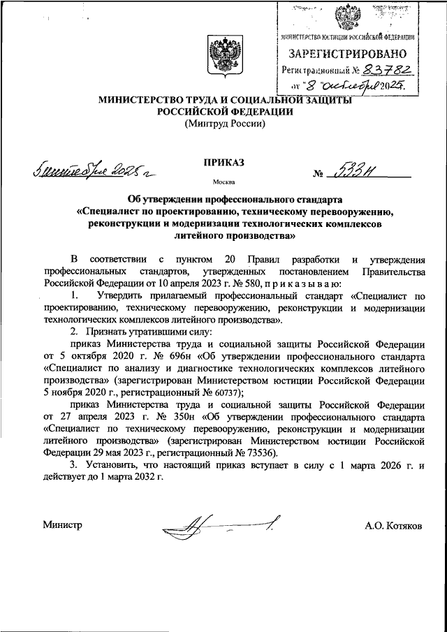 ПРИКАЗ Минтруда РФ от 05.09.2025 N 533н