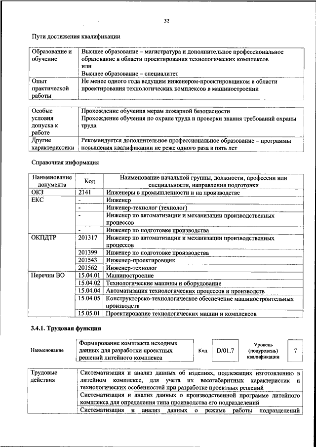 "ОБ УТВЕРЖДЕНИИ ПРОФЕССИОНАЛЬНОГО СТАНДАРТА "СПЕЦИАЛИСТ ПО ПРОЕКТИРОВАНИЮ, ТЕХНИЧЕСКОМУ ПЕРЕВООРУЖЕНИЮ, РЕКОНСТРУКЦИИ И МОДЕРНИЗАЦИИ ТЕХНОЛОГИЧЕСКИХ КОМПЛЕКСОВ ЛИТЕЙНОГО ПРОИЗВОДСТВА"