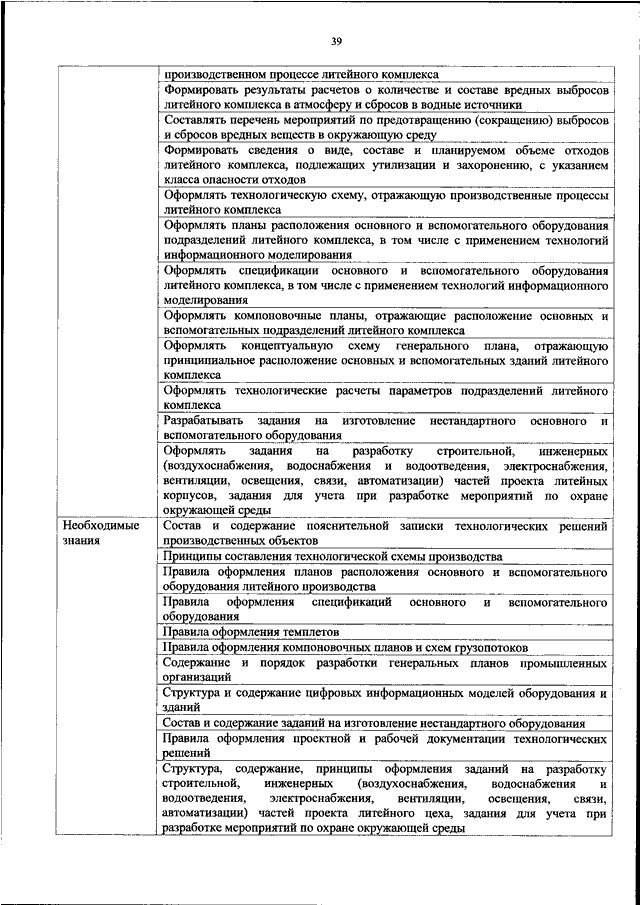 "ОБ УТВЕРЖДЕНИИ ПРОФЕССИОНАЛЬНОГО СТАНДАРТА "СПЕЦИАЛИСТ ПО ПРОЕКТИРОВАНИЮ, ТЕХНИЧЕСКОМУ ПЕРЕВООРУЖЕНИЮ, РЕКОНСТРУКЦИИ И МОДЕРНИЗАЦИИ ТЕХНОЛОГИЧЕСКИХ КОМПЛЕКСОВ ЛИТЕЙНОГО ПРОИЗВОДСТВА"