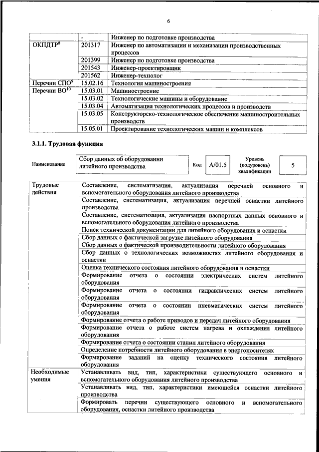 "ОБ УТВЕРЖДЕНИИ ПРОФЕССИОНАЛЬНОГО СТАНДАРТА "СПЕЦИАЛИСТ ПО ПРОЕКТИРОВАНИЮ, ТЕХНИЧЕСКОМУ ПЕРЕВООРУЖЕНИЮ, РЕКОНСТРУКЦИИ И МОДЕРНИЗАЦИИ ТЕХНОЛОГИЧЕСКИХ КОМПЛЕКСОВ ЛИТЕЙНОГО ПРОИЗВОДСТВА"