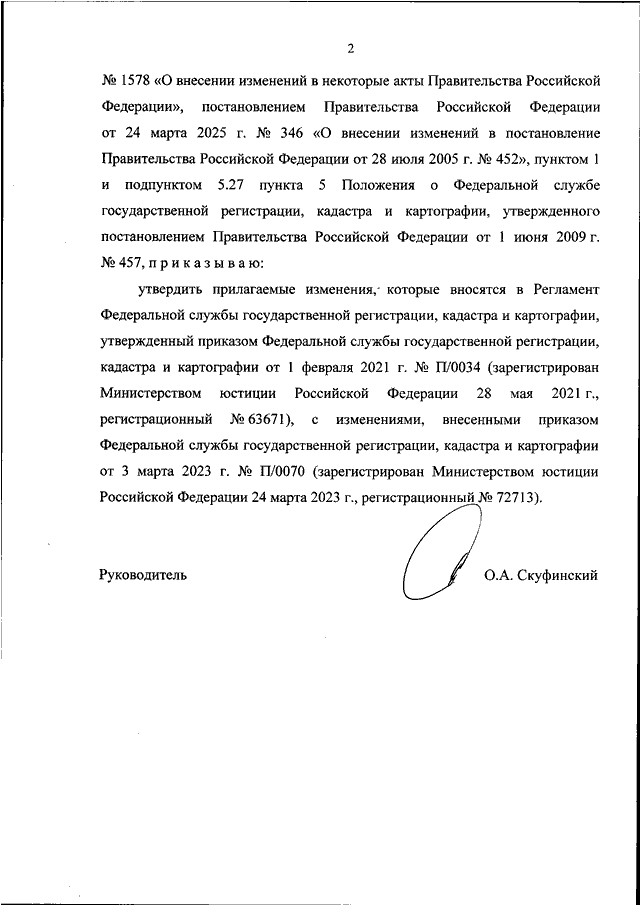 "О ВНЕСЕНИИ ИЗМЕНЕНИЙ В РЕГЛАМЕНТ ФЕДЕРАЛЬНОЙ СЛУЖБЫ ГОСУДАРСТВЕННОЙ РЕГИСТРАЦИИ, КАДАСТРА И КАРТОГРАФИИ, УТВЕРЖДЕННЫЙ ПРИКАЗОМ ФЕДЕРАЛЬНОЙ СЛУЖБЫ ГОСУДАРСТВЕННОЙ РЕГИСТРАЦИИ, КАДАСТРА И КАРТОГРАФИИ ОТ 1 ФЕВРАЛЯ 2021 Г. N П/0034"