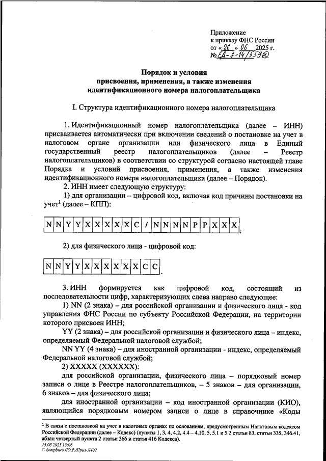ПРИКАЗ ФНС РФ от 26.06.2025 N ЕД-7-14/559@