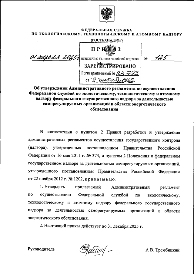 ПРИКАЗ Ростехнадзора от 01.04.2025 N 125
