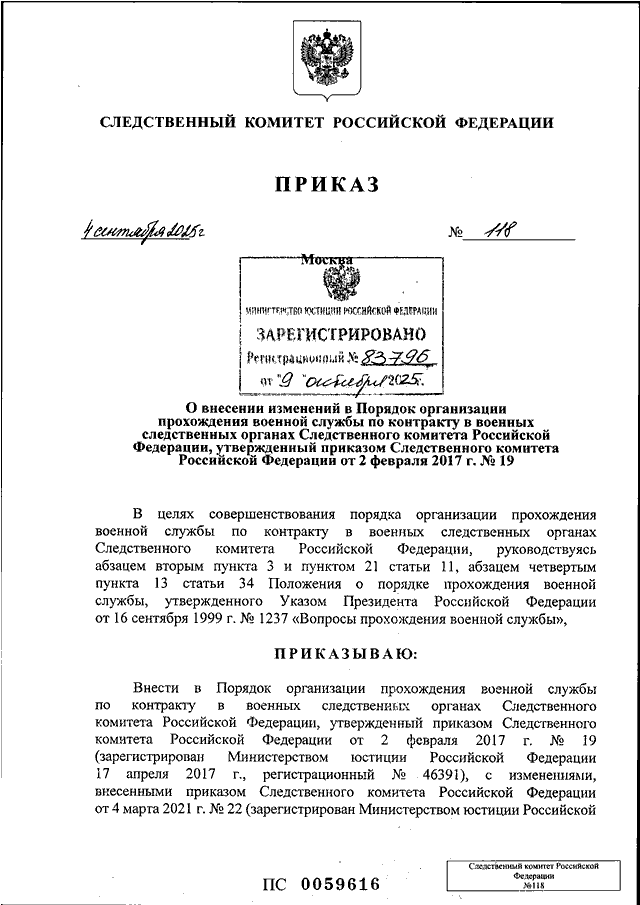 ПРИКАЗ Следственного комитета РФ от 04.09.2025 N 118