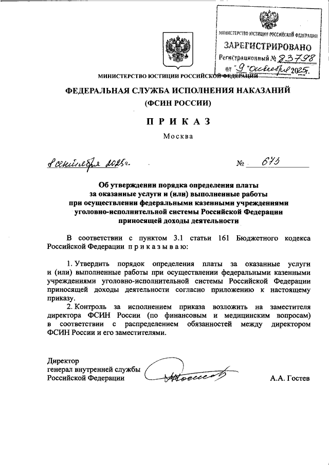 ПРИКАЗ ФСИН РФ от 08.09.2025 N 673