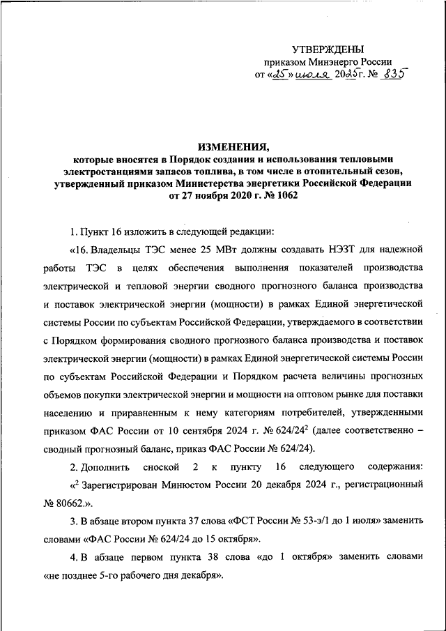 ПРИКАЗ Минэнерго РФ от 25.07.2025 N 835