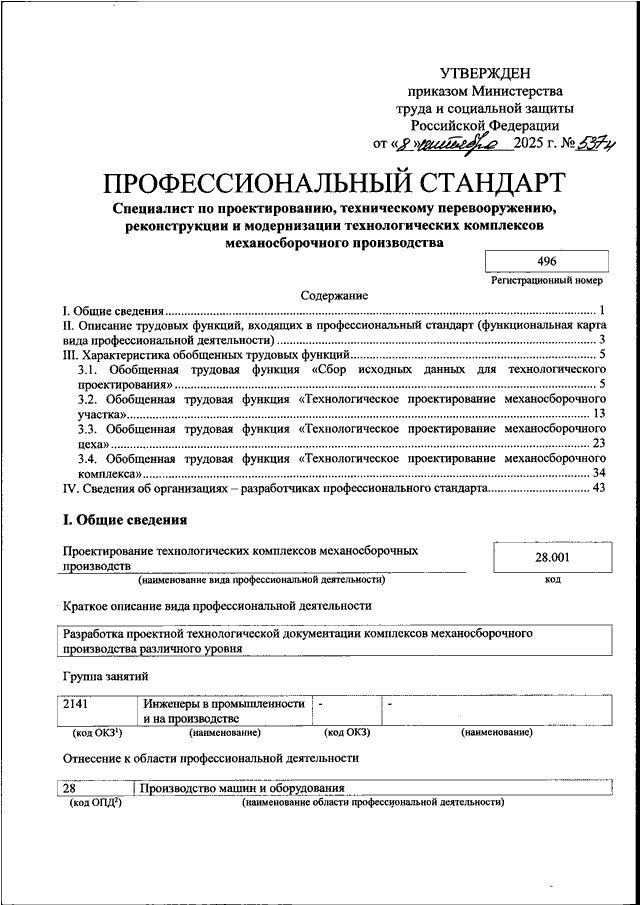 "ОБ УТВЕРЖДЕНИИ ПРОФЕССИОНАЛЬНОГО СТАНДАРТА "СПЕЦИАЛИСТ ПО ПРОЕКТИРОВАНИЮ, ТЕХНИЧЕСКОМУ ПЕРЕВООРУЖЕНИЮ, РЕКОНСТРУКЦИИ И МОДЕРНИЗАЦИИ ТЕХНОЛОГИЧЕСКИХ КОМПЛЕКСОВ МЕХАНОСБОРОЧНОГО ПРОИЗВОДСТВА"