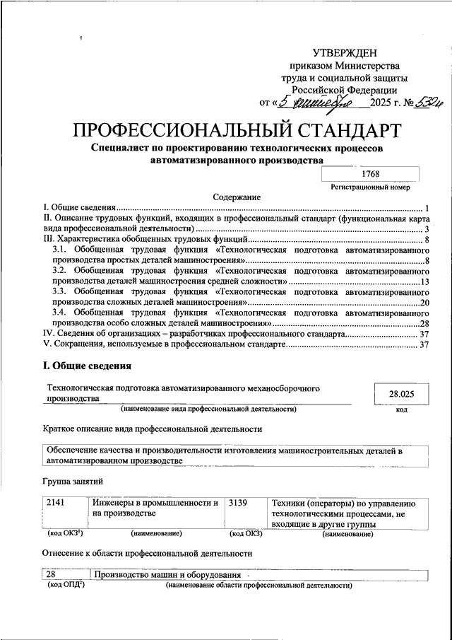 "ОБ УТВЕРЖДЕНИИ ПРОФЕССИОНАЛЬНОГО СТАНДАРТА "СПЕЦИАЛИСТ ПО ПРОЕКТИРОВАНИЮ ТЕХНОЛОГИЧЕСКИХ ПРОЦЕССОВ АВТОМАТИЗИРОВАННОГО ПРОИЗВОДСТВА"